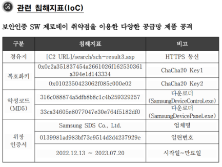 - Lazarus APT 그룹의 최근 해킹 사고에서도 복호화키로 ChaCha20 Key를 사용함