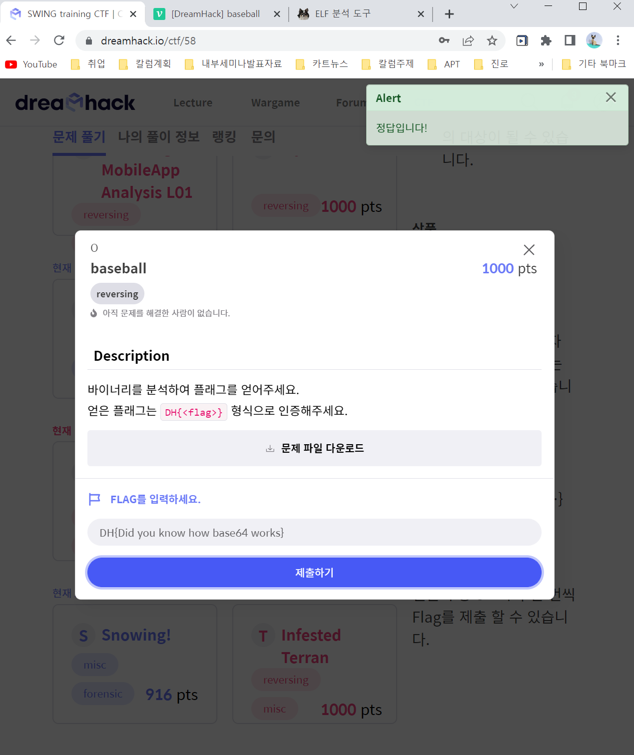 위 코드가 base64의 코드인데 정말 비슷하다고 느끼는것이 2만큼 움직이고 6만큼움직이고 해당길이가 2이상인지등의 조건문등의 모습이 너무 비슷했다. 솔직히 반쯤 야매일수있지만 base64로 바꾸는 함수가 아닌가 싶었다. 아닐수도 있지만 base64와 baseball의 비슷함에 힌트라고 생각했기에 바로 그냥 base64로 text_in의 값을 돌려봤다.