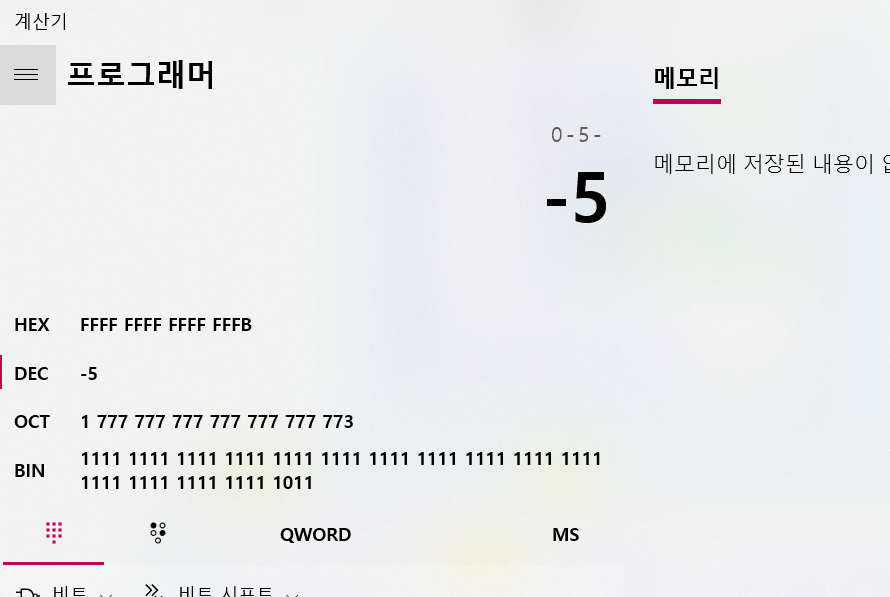 이때 -5와 곱한 문자와의 결과 값의 바이트가 넘어가는 경우는