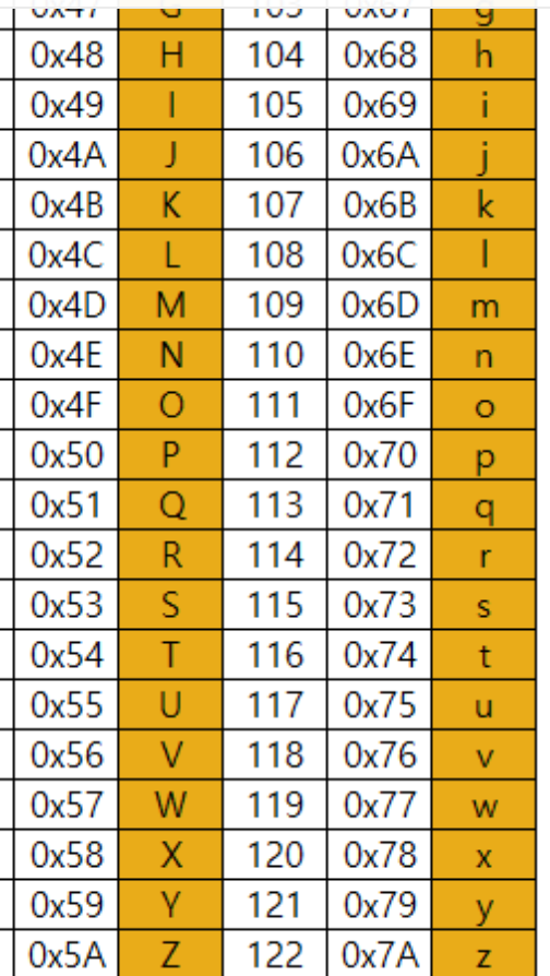 입력할수 있는 문자는 52개이고 가장 큰 값인 z는 10진수로 122다.