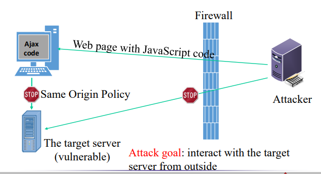 ▪ SOP(Same Origin Policy): 웹 브라우저는 AJax(Async. Javascript & XML)에 샌드박스 정책을 적용하여 웹 페이지 내의 Ajax 코드만 페이지가 시작된 동일한 서버와 상호 작용할 수 있도록 합니다.