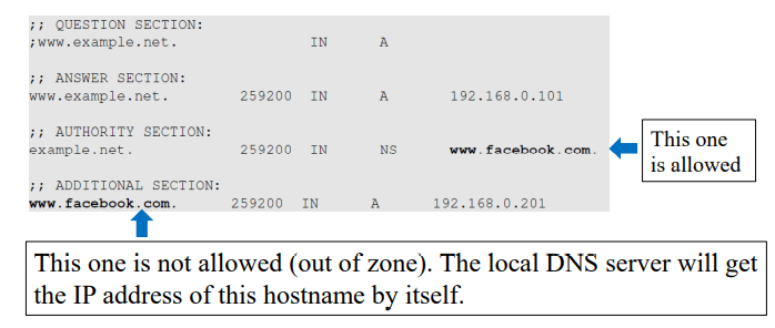 ▪ 응답의 응답 섹션에 IP 주소를 제공하는 것 외에도 DNS 서버는 권한 및 추가 섹션에 정보를 제공할 수도 있습니다.