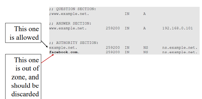 ▪ 실험을 통해 BIND 네임서버가 추가 섹션의 데이터를 캐싱했지만 추가 섹션에서 얻은 IP 주소를 신뢰하지 않는 것을 알 수 있습니다. 이는 간접 정보이기 때문입니다.