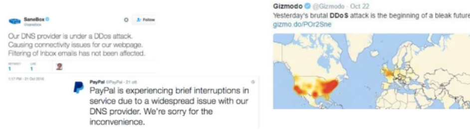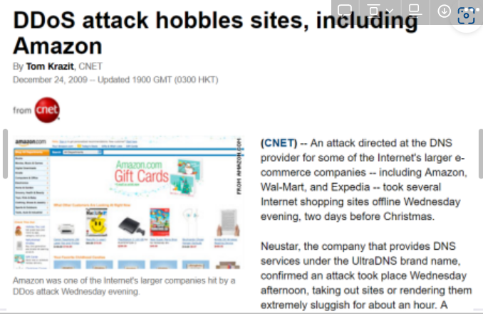 ▪ UltraDNS: Amazon, Walmart, Expedia와 같은 많은 주요 전자 상거래 회사를 위한 DNS 공급자. 2004년에 이 공급자에 대한 DOS가 시작되어 한 시간 동안 중단되었습니다.