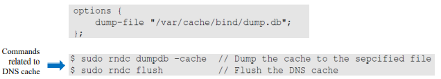 ▪ “sudo rndc dumpdb –cache”를 실행하여 “/var/cache/bind/dump.db”의 내용을 확인한다.