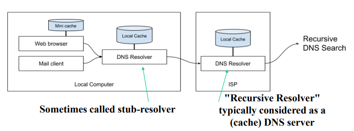 – resolver는 먼저 자신의 데이터에서 IP 주소를 찾으려고 시도하고, 실패하면 로컬 DNS 서버라고 하는 도우미에게 요청을 보냅니다.