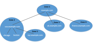 ▪ 도메인이 하위 도메인으로 분할된 경우 해당 DNS 데이터는 여전히 동일한 영역에 배치될 수 있으므로 도메인과 영역은 여전히 동일합니다.